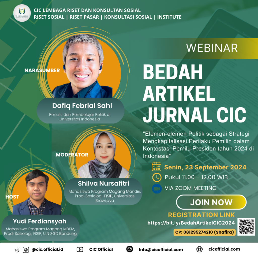 #WebinarCIC #BedahArtikelJurnal #Politik2024 #PemiluIndonesia #StrategiPolitik